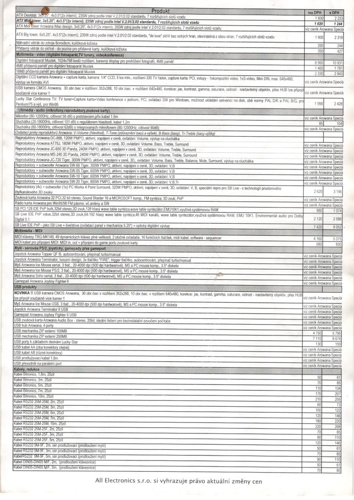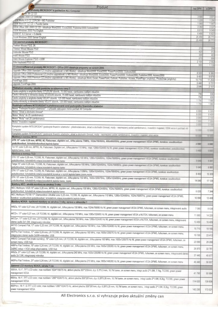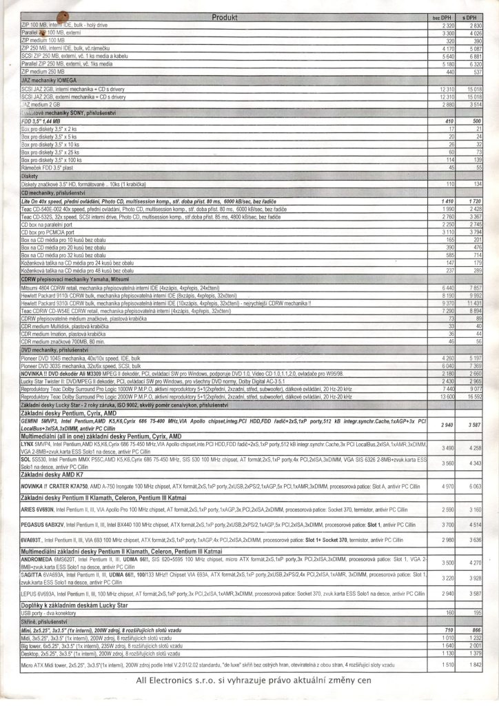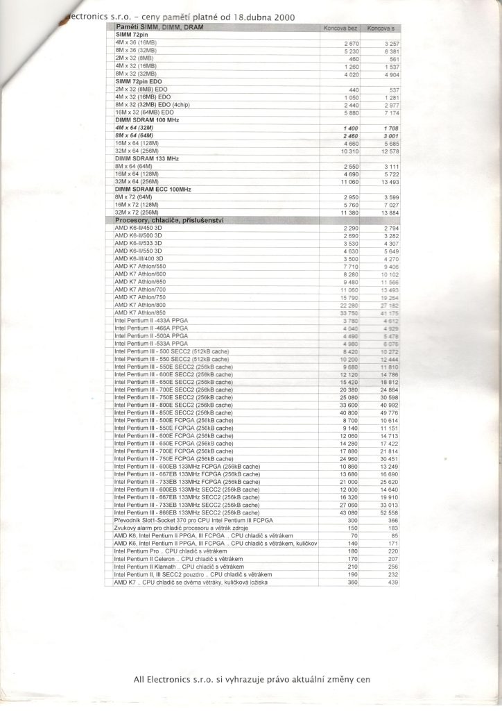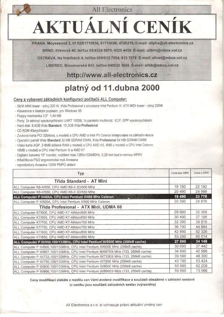 Děkuji kolegům a sběratelům za možnost oskenovat a zachovat pro budoucí generace tento ceník, který nám toho vypovídá opravdu hodně o cenách počítačů a zejména příslušenství k PC z roku 2000.